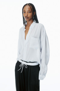 These black drapey pants sit at mid-rise with a balloon leg and feature a double-pleated front. Details like logo detailing on the inner waistband with triple-channel stitching underline this collection's sporty underpinnings. - belt loops - elastic waistband - faux fly, front - body composition: 54% viscose/46% cupro - trim: 85% polyester/15% elastodiene - made in china - model is 5'10" and wears a size s - 1WC2254844001 composition Body: 54%VISCOSE/46%CUPRO Elastic: 85%POLYESTER/15%ELASTODIENE