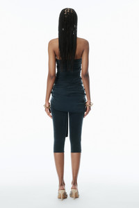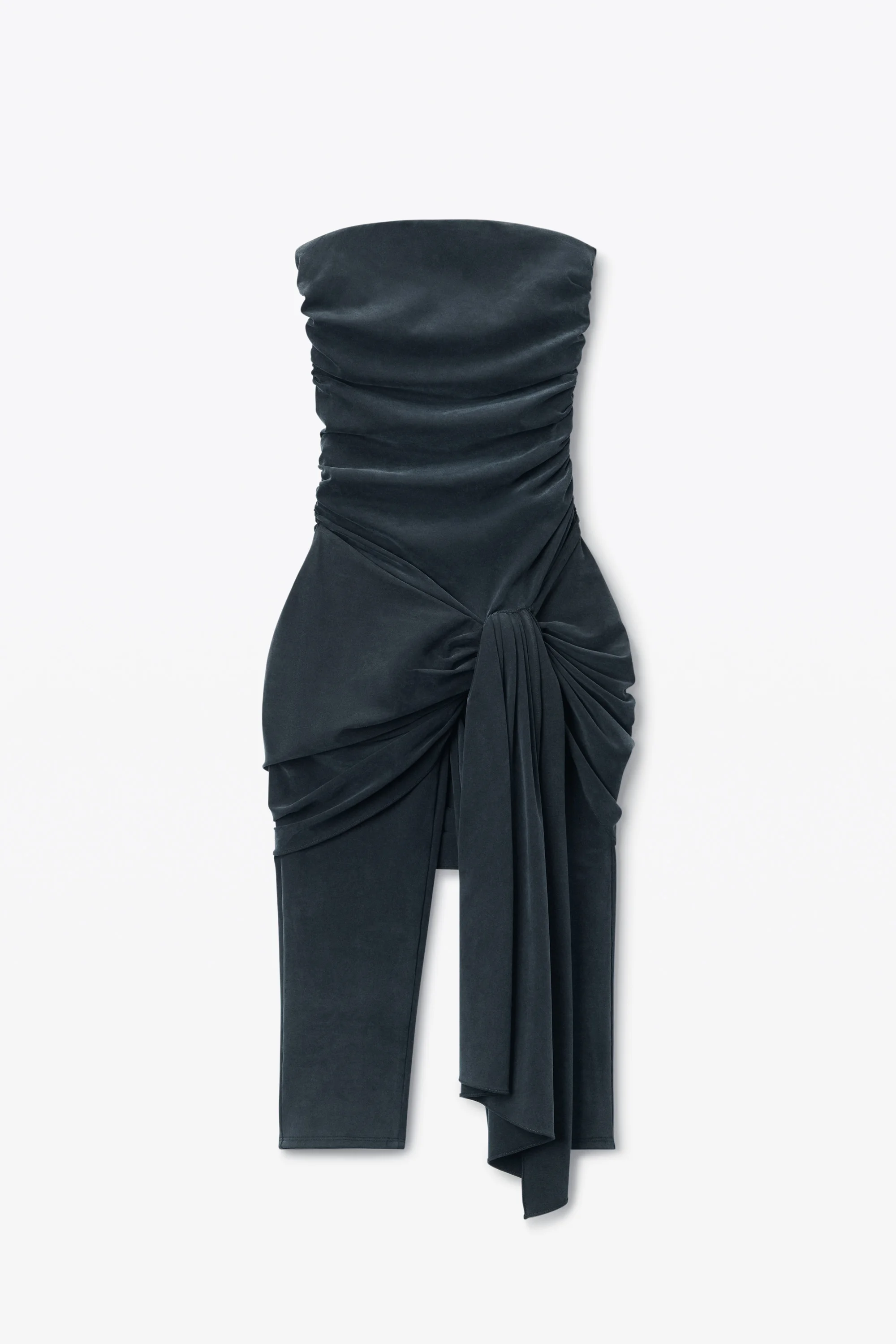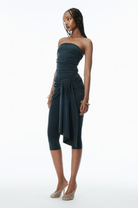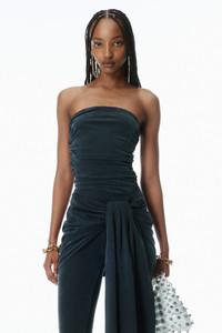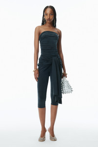 This grey catsuit features a pareo-inspired skirt and capri-length pants. It is detailed with slight ruching and a concealed zip closure. - concealed zip closure - strapless - body composition: 89% lyocell /11% elastane - trim: 100% silk - made in hong kong - model is 5'10" and wears a size s - 1CC2257217020 composition Body: 89%LYOCELL/11%ELASTANE Binding: 100%SILK
