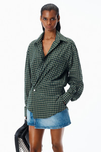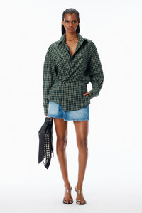 Green and navy cotton poplin mini dress crafted with a pre-styled silhouette. Designed with a button-up shirt top and wrapped denim skirt for an effortless layered look. - Green/Navy - Point collar - Front placket - Patch back pockets - Body Composition: 100% cotton - Body 2: 100% Cotton - Model is 5'11" and Wears a Size 4 - Made in China - 1WC1266937961E composition Body 1: 100%COTTON Body 2: 100%COTTON