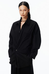 black cotton poplin mini dress crafted with a pre-styled silhouette. Designed with a button-up shirt top and wrapped denim skirt for an effortless layered look. - Black - Point collar - Front placket - Patch back pockets - Body Composition: 100% cotton - Body 2: 100% Cotton - Model is 5'11" and Wears a Size 4 - Made in China - 1WC1266938001 composition Body 1: 100%COTTON Body 2: 100%COTTON