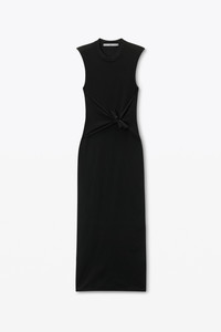 Accented by a pre-styled knot at the waist, this black midi dress features a fine-gauge nylon designed to mimic the snug comfort of T-shirt jersey. With its integrally knit construction at the armholes and neckline, this pullover silhouette evokes the sporty-casual appeal of athletic cut-off tees. - crewneck - sleeveless - pulls over - body composition: 88% polyamide/12% elastane - trim: 88% polyamide/12% elastane - made in china - model is 5'10" and wears a size s - 1KC2256052001 composition Body: 88%POLYAMIDE/12%ELASTANE Trim: 88%POLYAMIDE/12%ELASTANE