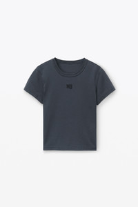 Shrunken short sleeve cotton jersey tee in soft obsidian with puff stacked logo "wang" print at neckline - relaxed fit - hits above hip - rib knit crewneck collar - garment dyed with potassium fade - composition: 100% cotton - made in china - model is 5'11" and wears size s - 4CC3221358094A composition Body: 100%COTTON Rib: 100%COTTON