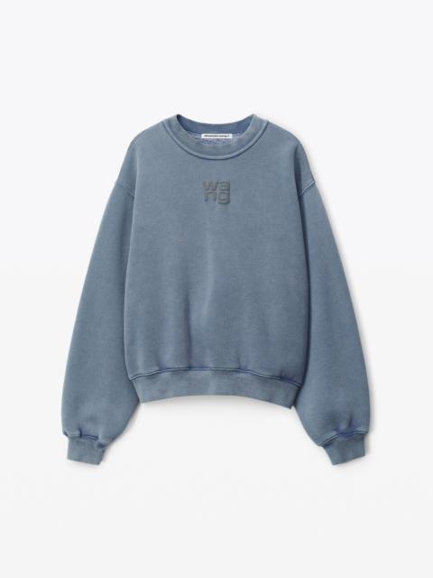 black long-sleeve crewneck sweatshirt in heavy brushed structured terry with stacked puff paint logo at neckline - relaxed fit - hip-length bottom hem - ribbed neckline, sleeeve cuffs and bottom hem - composition: cotton, polyester - made in china - model is 5'10" and wears size s - 4CC3221360001 composition Body: 75%COTTON/25%POLYESTER Rib: 99%COTTON/1%ELASTANE