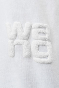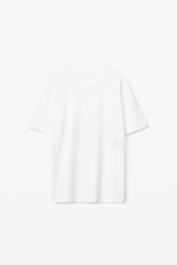 white classic short-sleeve crewneck tee in structured jersey with stacked puff paint logo at left side - relaxed fit - bottom hem hits below hips - composition: 100% cotton - made in china - model is 5'9" and wears size s - 4CC3221357100 composition Body: 100%COTTON Rib: 100%COTTON