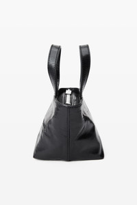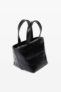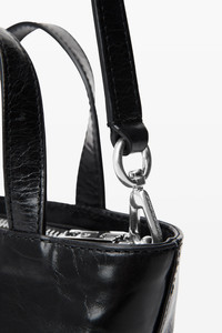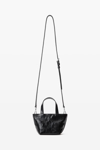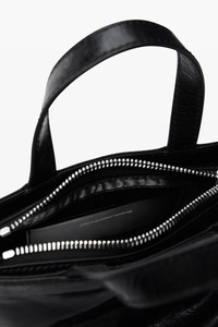Featuring a tonal raised "alexander wang" logo at the center front—this small leather bag is crafted in black crackle patent leather for a broken-in look and feel. The tote has a twill lining and features a removable crossbody strap. - top zip closure - single main compartment - twill lining - body composition: 100% cow leather - lining: 100% polyester - made in Vietnam - dimensions: 18 x 11 x 11 cm - strap length: 8 cm - 20324T40L001 composition Body: 100%COW LEATHER Lining: 100%POLYESTER