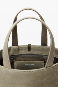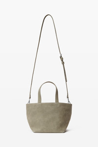 Featuring a tonal raised "alexanderwang" logo at the center front—this small cotton tote in khaki is crafted of waxed canvas designed to look worn over time. The tote has a twill lining and features a removable crossbody strap. Please note: This product features a treated wax finish, resulting in color variations and markings. With wear over time, subsequent alterations to the texture and hand feel may enhance the character and uniqueness of each piece. - detachable crossbody strap - internal tie closure - single main compartment, canvas lining - body composition: 100% cotton - lining: 100% cotton - made in Vietnam - dimensions: 18 x 11 x 11 cm - strap length: 8 cm - 20324T45T248A composition Body: 100%COTTON LINING: 100%COTTON
