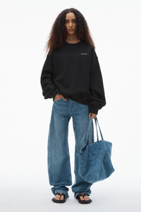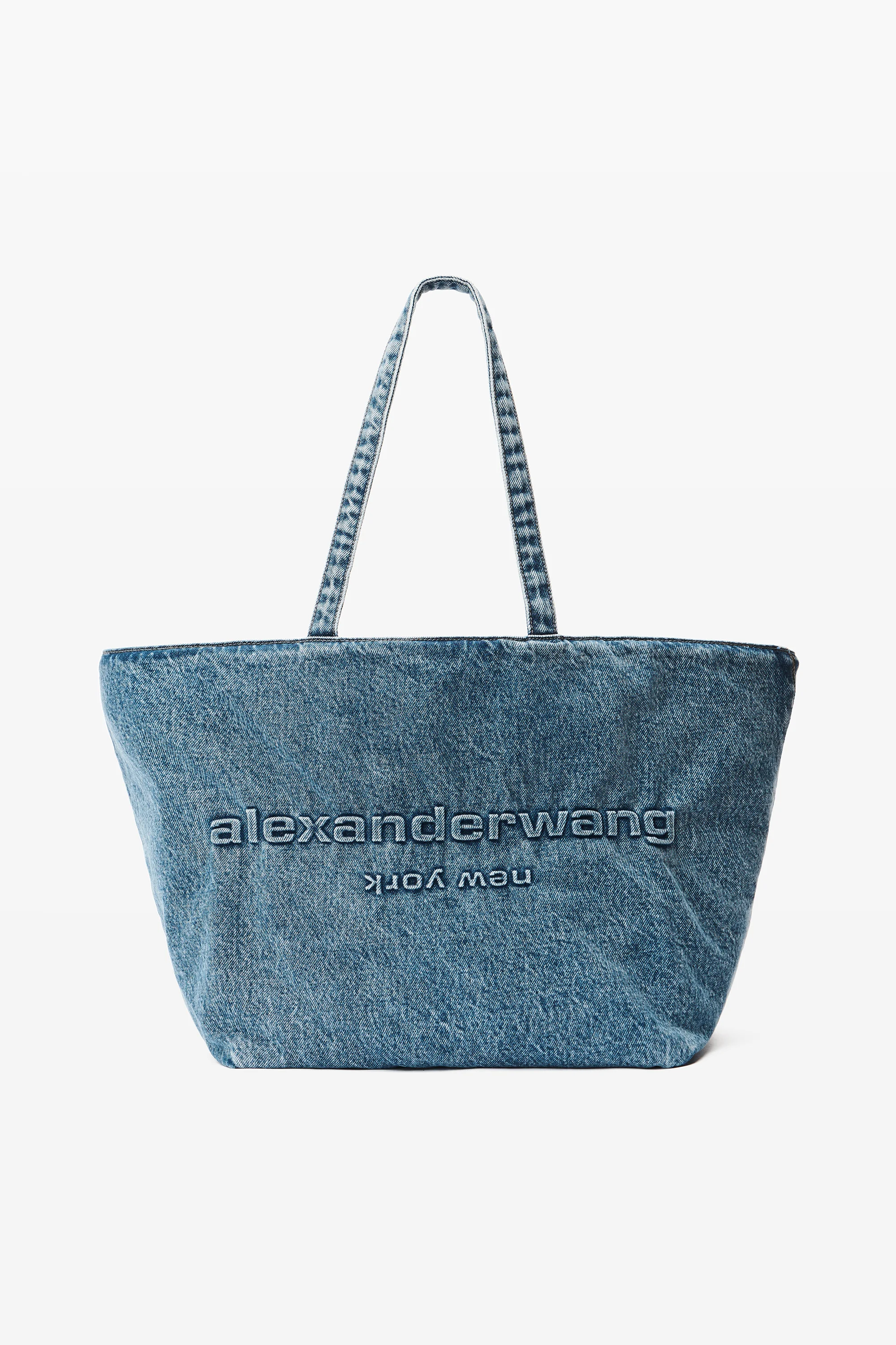 featuring a tonal raised "alexander wang" logo at the center front—this large bag is crafted of khaki waxed canvas for a broken-in look and feel. the tote features an interior back wall pocket that fits a laptop, two large handles, and an additional tie closure at the interior top. please note: this product features cotton denim in a vintage medium indigo wash. - single main compartment - twill lining - body composition: 100% cotton - lining: 100% polyester - dimensions: 55.5x30.1x25cm / 21.9x11.9x9.8in - drop: 24cm / 9.4in - made in china - 20125T30T473 composition Body/Exterieur: 100%COTTON Lining 1: 100%POLYESTER