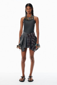 Red & Grey Plaid Cotton Miniskirt
