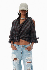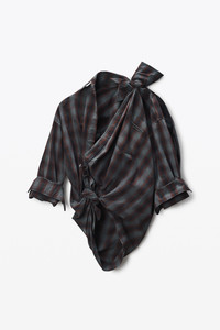 This red cotton plaid shirt features a twisted design with a stylized knot at the side and cold-shoulder detail. It includes a logo-embroidered chest pocket, pre-styled cuffs, and fastens with a button placket. - point collar - long sleeves, pre-styled cuffs - button placket - body composition: 100% cotton - made in china - model is 5’11" and wears a size 4 - 1WC3251090933 composition Body: 100%COTTON