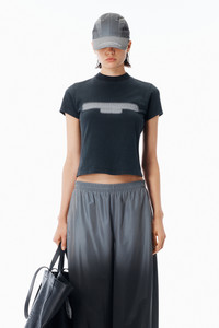 Washed black cotton jersey tee in a shrunken short sleeve silhouette. Designed with a rib crewneck and an embossed logo framed by a reflective halo print at the chest. Works solo or layered for added dimension. - washed black - shrunken short sleeve fit - rib crewneck - embossed chest logo - straight hem - Body composition: 100% cotton - Trim: 99% cotton, 1% elastane - model is 5'11" and wears a size s - made in portugal - 1CC1261210011 composition Body: 100%COTTON Rib Trim: 99%COTTON/1%ELASTANE