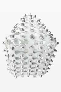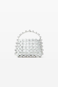 trap studs define this pyramid-shaped rex mini bucket bag in optic white. a fixed top handle and removable strap with a logo-rolled adjusted buckle allows for maximum versatility. - top handle - magnetic closure - main compartment, logo jacquard lining - body composition: cow leather - lining: polyester - trim: aluminum - dimensions: 21x13 x15cm / 8.3x5.1x5.9in - handle drop: 10.5cm / 4.1in - detachable adjustable crossbody strap - long strap length: 146cm / 57.5in - made in Vietnam - 20225R62L144 composition Body: 100%COW LEATHER Embellishment: 100%ALUMINUM Lining 1: 100%POLYESTER