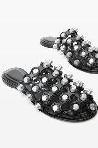 allover trap studs define this cage slide sandal in black, crafted of a nappa lambskin upper. - round toe - upper: sheep leather - lining: sheep leather - trim: aluminum - outsole: cow leather - made in china - 30125M014001 composition Upper: 100%Sheep Leather (Ovis Aries Aries) Embellishment: 100%ALUMINUM Lining: 100%Sheep Leather (Ovis Aries Aries) Outsole: 100%COW LEATHER
