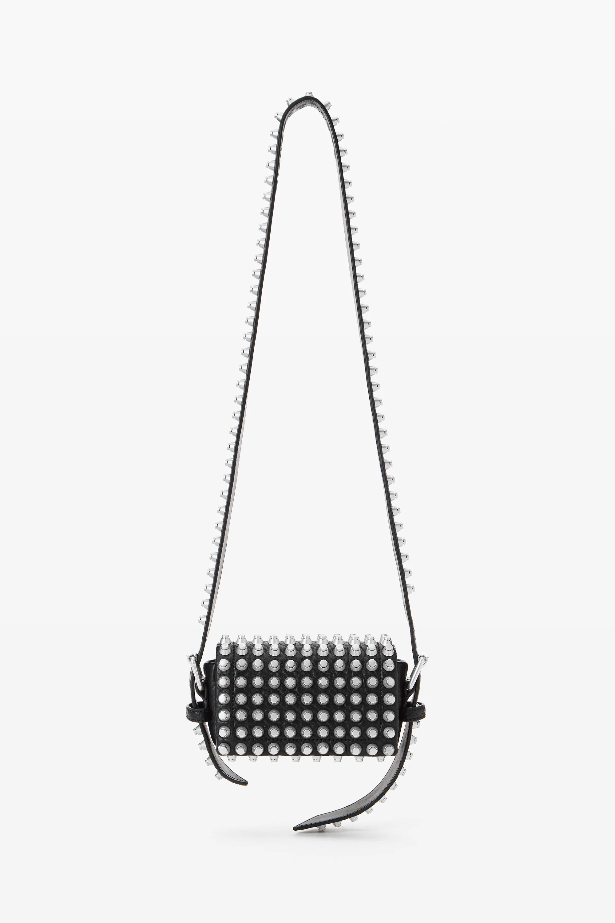 signature trap studs amplify the bottom panel of this black ricco mini crossbody bag, crafted of primal lambskin leather. - top handle - magnetic closure - main compartment, logo jacquard lining - body composition: lambskin leather - lining: polyester - trim: cow leather - trim 2: aluminum/alloy - dimensions: 18x10x 4.5cm / 7.1x3.9x1.8in - detachable adjustable crossbody strap - short strap length: 70cm / 27.6in - long strap length: 158cm / 62.2in - handle drop: adjustable - made in Vietnam - 20225X80L001 composition Body: 100%LAMBSKIN (OVIS ARIES ARIES) Trim 1: 100%COW LEATHER Trim 2: 98%ALUMINUM/2%ALLOY Lining 1: 100%POLYESTER