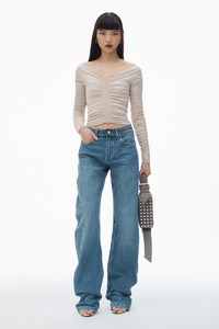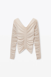A wide V-neck defines this ruched pullover in cement. - V-neckline - short sleeves - body composition: 39% cupro/32% polyamide/24% polyester/5% elastane - made in china - model is 5'10.5" and wears a size s - 1KC1251094926 composition Body/Exterieur: 39%CUPRO/32%POLYAMIDE/24%POLYESTER/5%ELASTANE Trim 1: 45%POLYAMIDE/30%CUPRO/16%POLYESTER/9%ELASTANE Trim 2: 48%CUPRO/30%POLYESTER/19%POLYAMIDE/3%ELASTANE