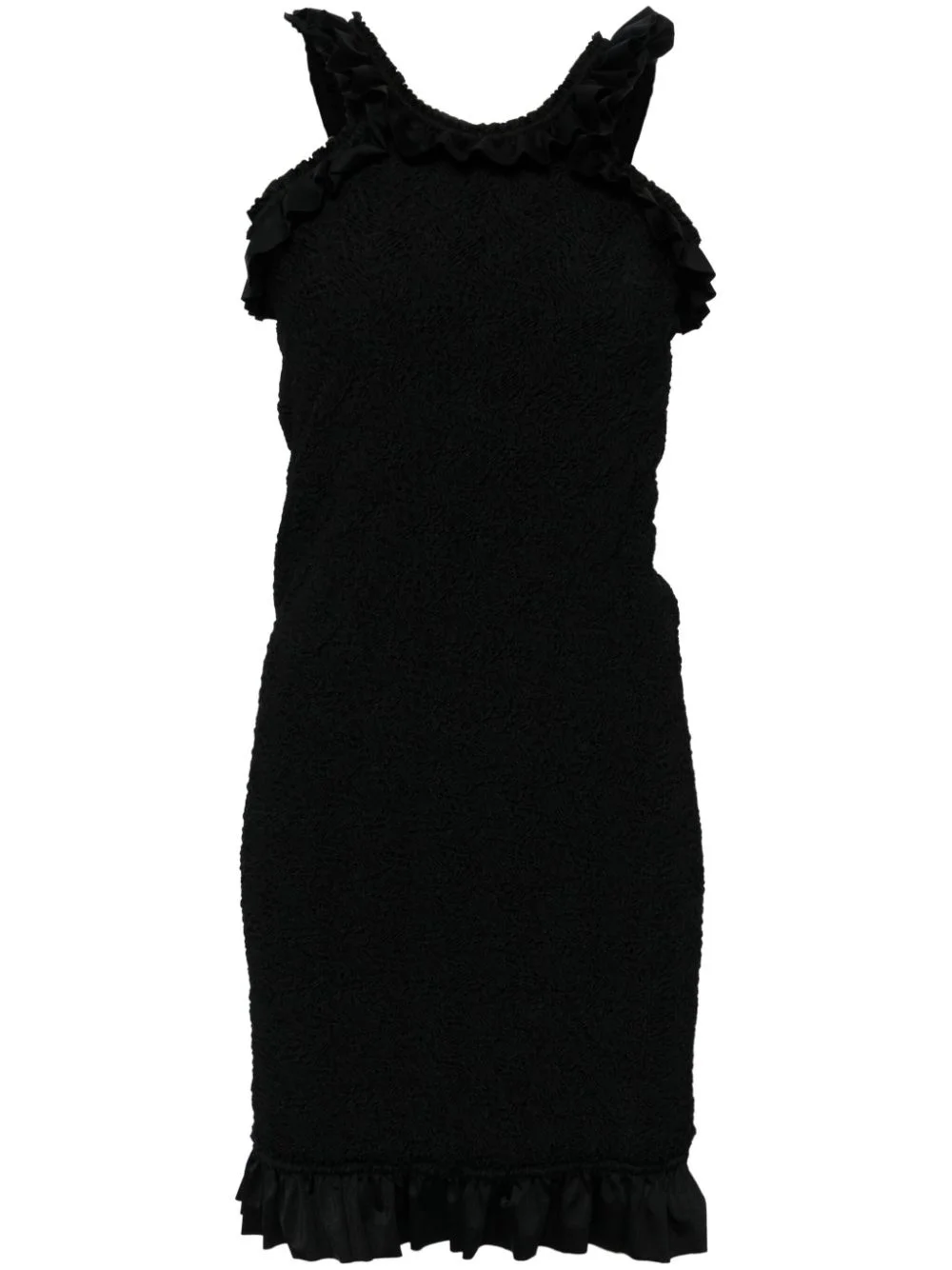 ruffle-hem smocked mini dress Highlights - Black - Stretch-design - Fully smocked - Ruffle collar - Round neck - Above-knee length - Ruffle hem Imported Composition Polyamide 78%, Elastane 22% SIZE & FIT Model measurements Height 5 ft 10 in(1.77 m) Bust/Chest 30.7 in(78 cm) Hips 35.03 in(89 cm) Waist 23.62 in(60 cm) FittingInformation Designed for a close fit throughout Made from a midweight stretch fabric, this piece offers elasticity and flexibility when worn This piece fits true to size – take your usual size