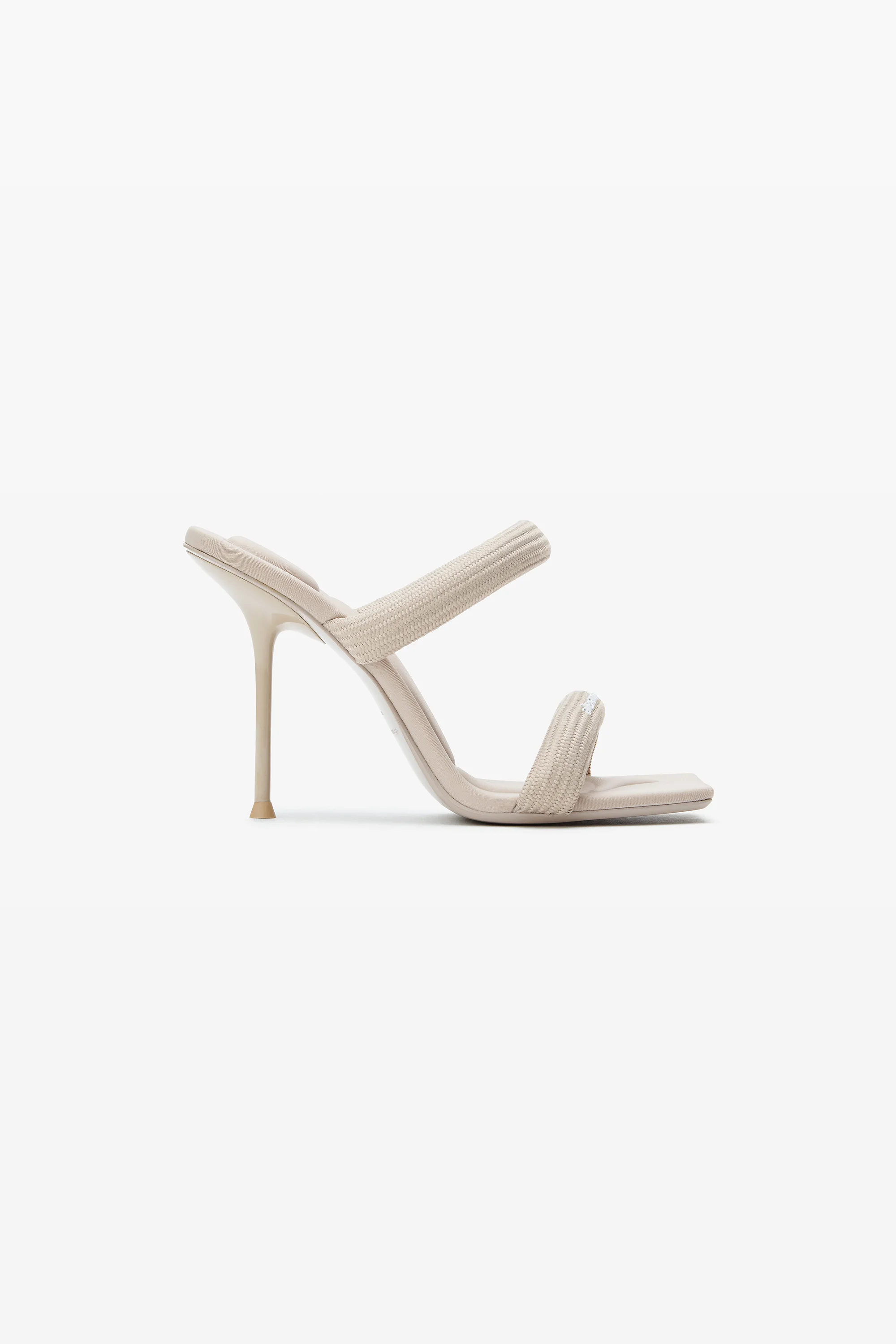 padded sand stiletto sandals with a woven logo detail and a high-frequency molded footbed. - square toe - comfort footbed - shaped heel - heel height: 105mm / 4.1 in - upper: 100% nylon - lining: 62%polyamide/33%spandex/5%thermoplastic polyurethane - outsole: cow leather - made in china - 30321S033266 composition Upper: 100%NYLON Lining: 62%POLYAMIDE/33%SPANDEX/5%THERMOPLASTIC POLYURETHANE Outsole: 100%COW LEATHER