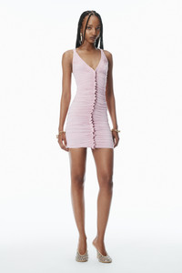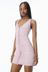 A ruched construction characterizes this pink sleeveless minidress detailed with a V-neckline and back. - pull-on style - body composition: 93% viscose/7% elastane - made in hong kong - model is 5'10" and wears a size s - 1CC2256750690B composition Body: 93%VISCOSE/7%ELASTANE