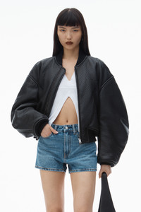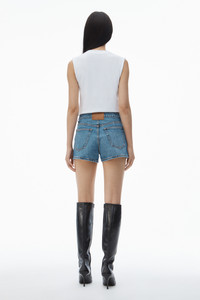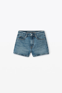high-rise shorts with invisible zip pockets at sides and classic denim pockets at back in vintage medium indigo wash - fitted waist with relaxed fit through legs - bottom hem hits at high thigh - zip front closure - composition: 100% cotton - made in china - model is 5' 11" and wears a size 26 - 4DC3234177473 composition Body/Exterieur: 100%COTTON