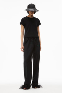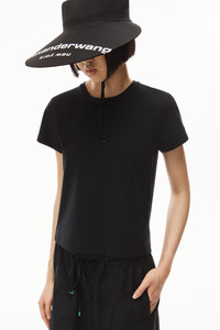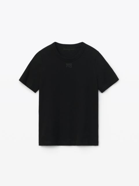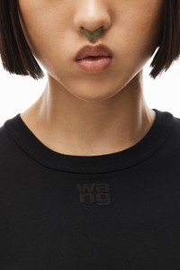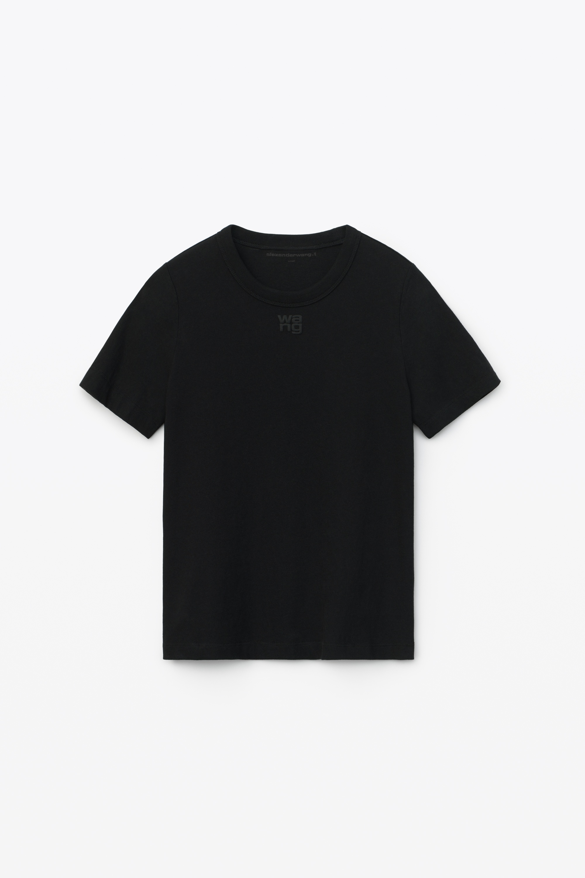 black short-sleeve tee with a tonal puff paint logo at neckline - shrunken fit - ribbed cuffs - ribbed crewneck collar - 100% cotton - model wears size s - made in portugal - 4CC1201154001 composition BD 100.0%: 100.0%FWC RI 100.0%: 100.0%FWC