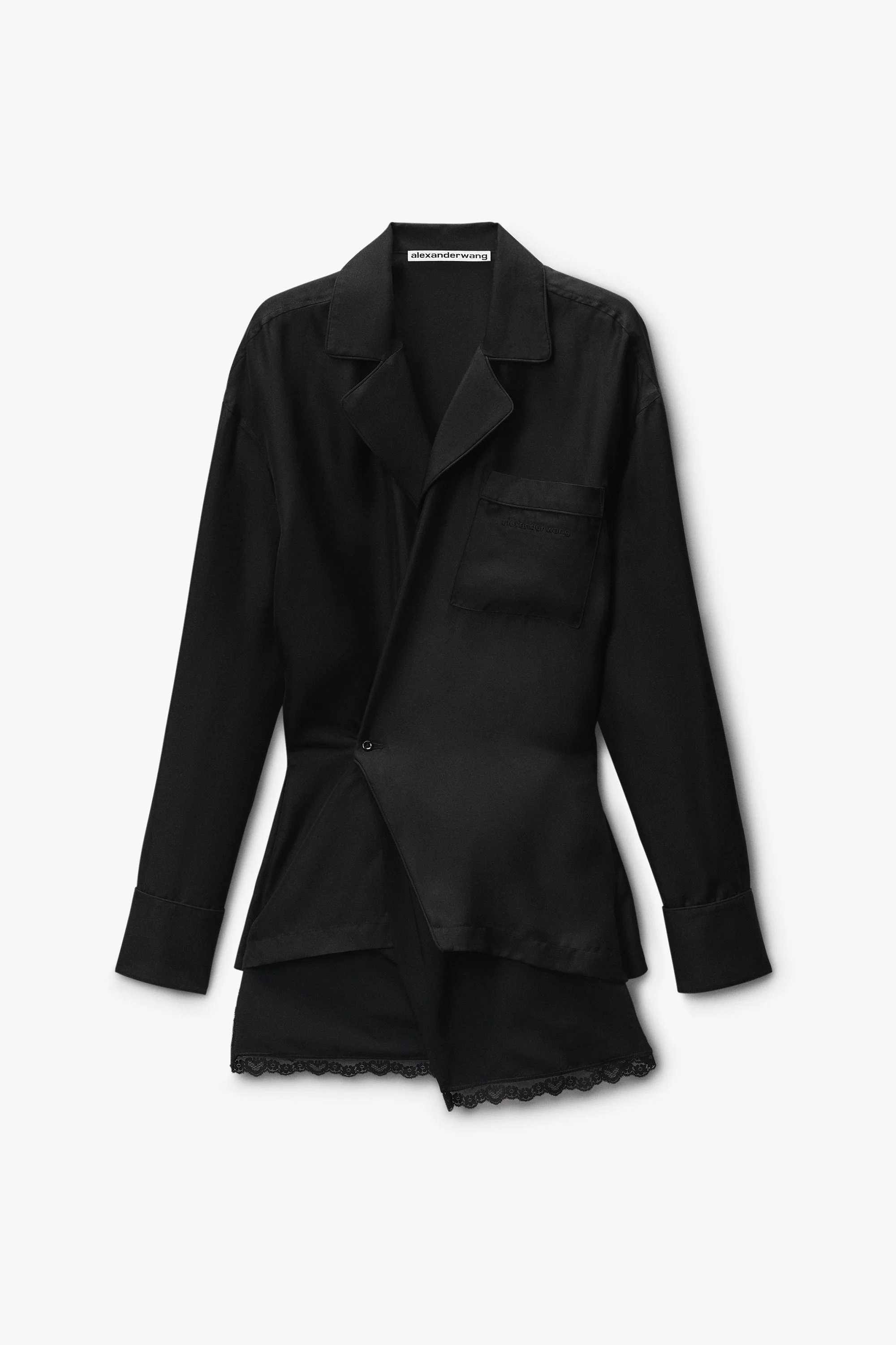 a body-skimming wrap mini dress cut to cling and control. clean lines, tight shape and zero excess. - black - body composition: 100% heavy silk twill - made in china - 1WC2266991001 composition Body 1/Corps 1 100.0%: 100%SILK Body 2/Corps 2 100.0%: 100%VISCOSE TRIM/GARNITURE/BORD 100.0%: 100%POLYAMIDE