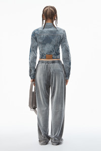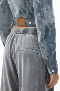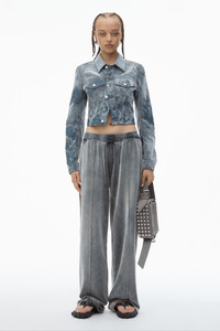 A unique cloud print amplified by allover flocking defines this slim-fit denim trucker jacket in smoke. - point collar - button closure - chest pockets - long sleeves - relaxed fit - body composition: 100% cotton - material 2: 100% viscose - model is 5'8" and wears a size s - made in china - 4DC1252572132A composition Body Base: 100%COTTON Body Flocking: 100%VISCOSE