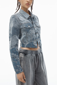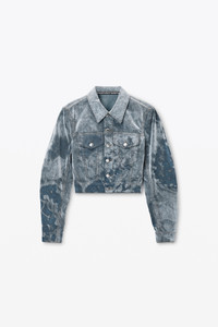 Slim Trucker Jacket in Flocked Denim