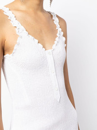 smocked cotton mini dress Alexander Wang presents a curated minimalist aesthetic in the clean lines and seductive smocking of this mini dress. With slim straps and a front button fastening, it's rendered in a dreamy white colourway. Highlights - White - Cotton - Smocking details - V-neck - Front button fastening - Sleeveless - Lettuce hem - Thigh-length Imported Composition Cotton 100% SIZE & FIT Model measurements Height 5 ft 10 in(1.77 m) Bust/Chest 31.49 in(80 cm) Hips 35.43 in(90 cm) Waist 25.19 in(64 cm) FittingInformation Designed for a close fit throughout Made from a midweight stretch fabric, this piece offers elasticity and flexibility when worn Washing instructions Dry Clean Only