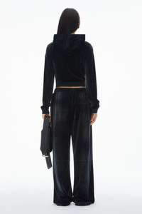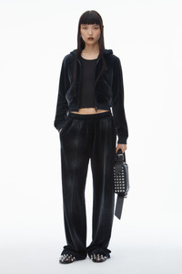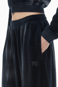 Sweatpant with Clear Bead Hotfix in Crushed Velour
