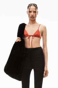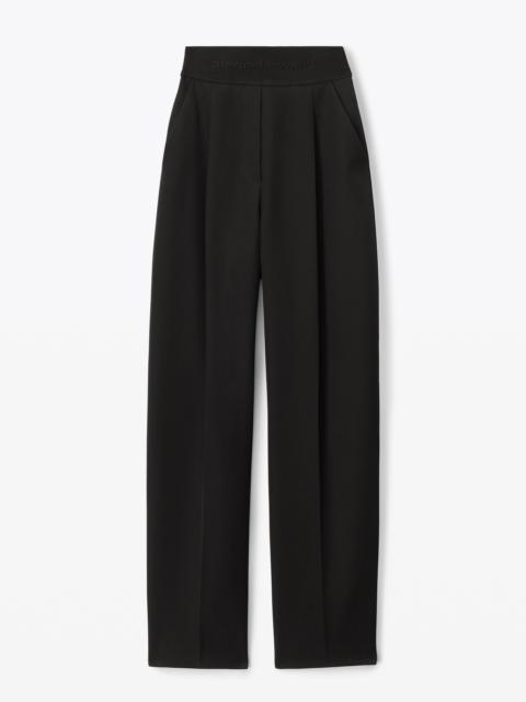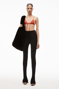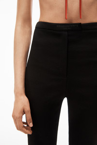 Black tailored legging with "Alexander Wang" matte PVC logo on waistband, featuring slit at leg opening - tight fit - hits at foot - unlined - composition: 68%COTTON/28%VISCOSE/2%ELASTANE/2%POLYAMIDE - made in hong kong - model is 5'9" and wears size s - 1WC4234638001