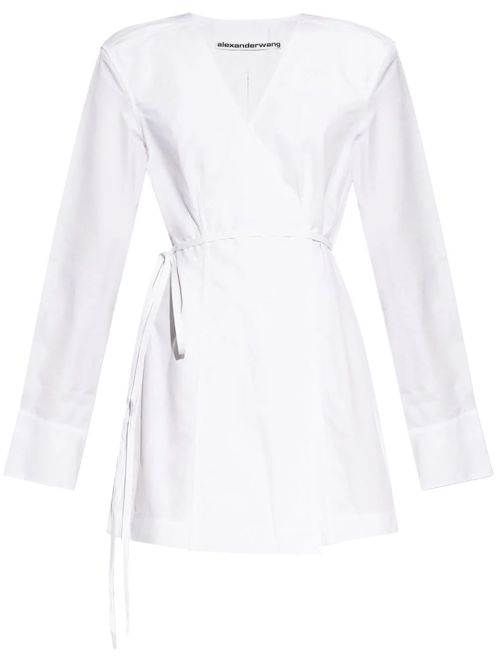slit-detailing wrap dress Highlights - White - Organic cotton - Embroidered logo at the sleeve - Slit detailing - Dart detailing - Wrap design - V-neck - Long sleeves - Buttoned cuffs - Tie-fastening straps - Straight hem Imported Composition Cotton 100% SIZE & FIT Measurement LENGTH 31.49 in(80 cm) WAIST 30.7 in(78 cm) BUST 35.43 in(90 cm) Shoulder Width 18.5 in(47 cm) Washing instructions Read Manufacturer Guidelines