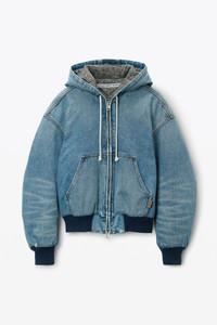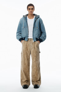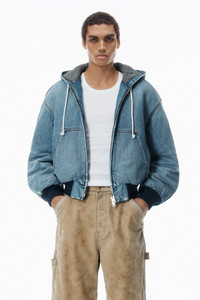 Cut in a rounded silhouette, this cotton denim workwear jacket in a classic worn indigo wash fastens with a front-zip closure. - front-zip closure - body composition: 100% cotton - lining: 52% cotton/28% acrylic/ 20% polyester - made in china - male model is 6’1" and wears a size m - female model is 5'10" and wears a size s - UDC1252692407A composition Body/Exterieur: 100%COTTON Lining: 52%COTTON/28%ACRYLIC/20%POLYESTER Rib: 87%COTTON/11%POLYESTER/2%ELASTANE Batting: 100%POLYESTER