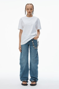 Unisex Tee with Distressed Logo in Cotton Jersey