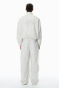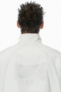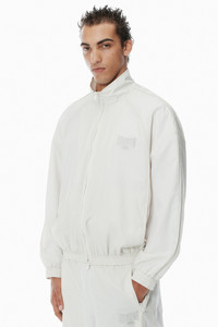 This black oversized track jacket features a classic shirt collar, piped seams, and side pockets. It is accented by an embroidered logo graphic at the chest. - shirt collar - elastic cuffs - side pockets - front-zip closure - body composition: 100% nylon - lining: 100% polyester - made in china - female model is 5'10" and wears a size s - male model is 6’0" and wears a size m - UWC2252059151 composition Body: 100%NYLON Lining: 100%POLYESTER