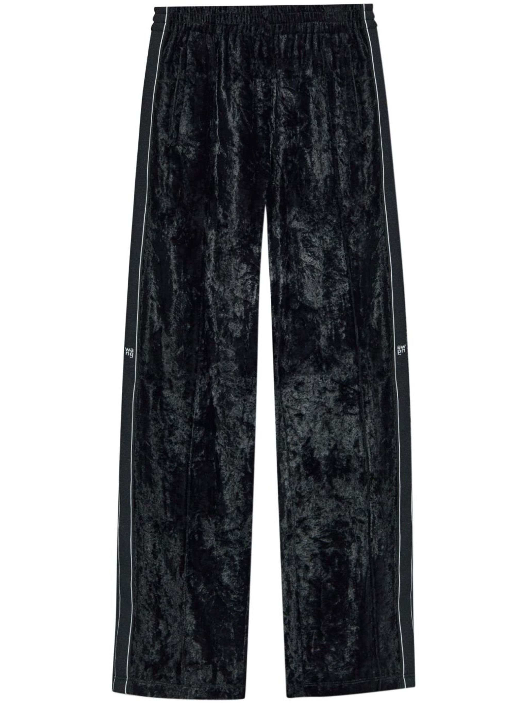 black side stripe detailing elasticated waistband rear patch pocket straight leg Size & Fit Model Measurements: Bust: 0cm Height: 0cm Hips: 0cm Waist: 0cm Fabric and Care Designer Style ID: 4WC1254415001 Designer Colour: 001 BLACK Composition: Viscose 63%, Cotton 37% Washing instructions: Read Manufacturer Guidelines