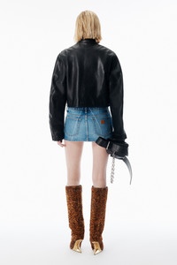 Mini skort in vintage marbled blue deep indigo denim, designed with hand-sanded foldlines reinforced by interior fusible for a crisp, pressed effect. Features a fully constructed under short, classic five-pocket styling, and a tan logo patch at the back pocket. - belt loops - zip fly, button closure - five-pocket style - mid-rise fit - body composition: 100% cotton - made in China - model is 5'11" and wears a size 27 - 4DC4255914400C composition Body: 100%COTTON