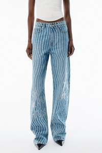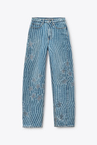 Float jean in vintage medium indigo regen denim, detailed with an allover stars and stripes laser print and silver rhinestone hotfix. Designed with a mid-rise waist, balloon leg shape, and twisted side seam construction, the fit is loose through the leg with stacking at the hem. - belt loops - zip fly - loose mid-rise fit - model is 5'11" and wears a size 27 - body composition: 100% cotton - made in China - 4DC4254890473 composition Body: 100%COTTON