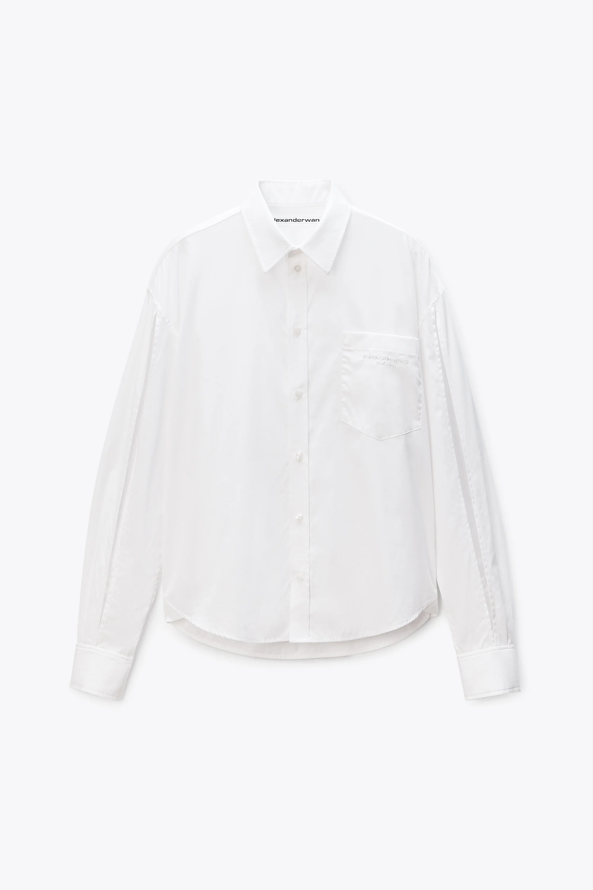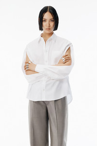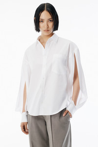 White menswear-inspired shirt cut from crisp organic compact cotton. Designed with slashed sleeves, it can be worn traditionally or styled with exposed arms for a directional twist. - shirt collar - convertible sleeve styling - front-button placket - tower placket cuffs - chest pocket - 100% cotton - made in China - model is 5'11" and wears a size s - 1WC4251131100 composition Body: 100%COTTON