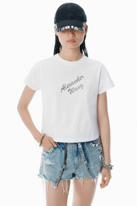 With a shrunken fit, this white cotton tee features a crystal hotfix logo at the chest. - crewneck - short sleeves - body composition: 100% cotton - made in Portugal - model is 5'11" and wears a size s - 1CC3251134100 composition Body: 100%COTTON