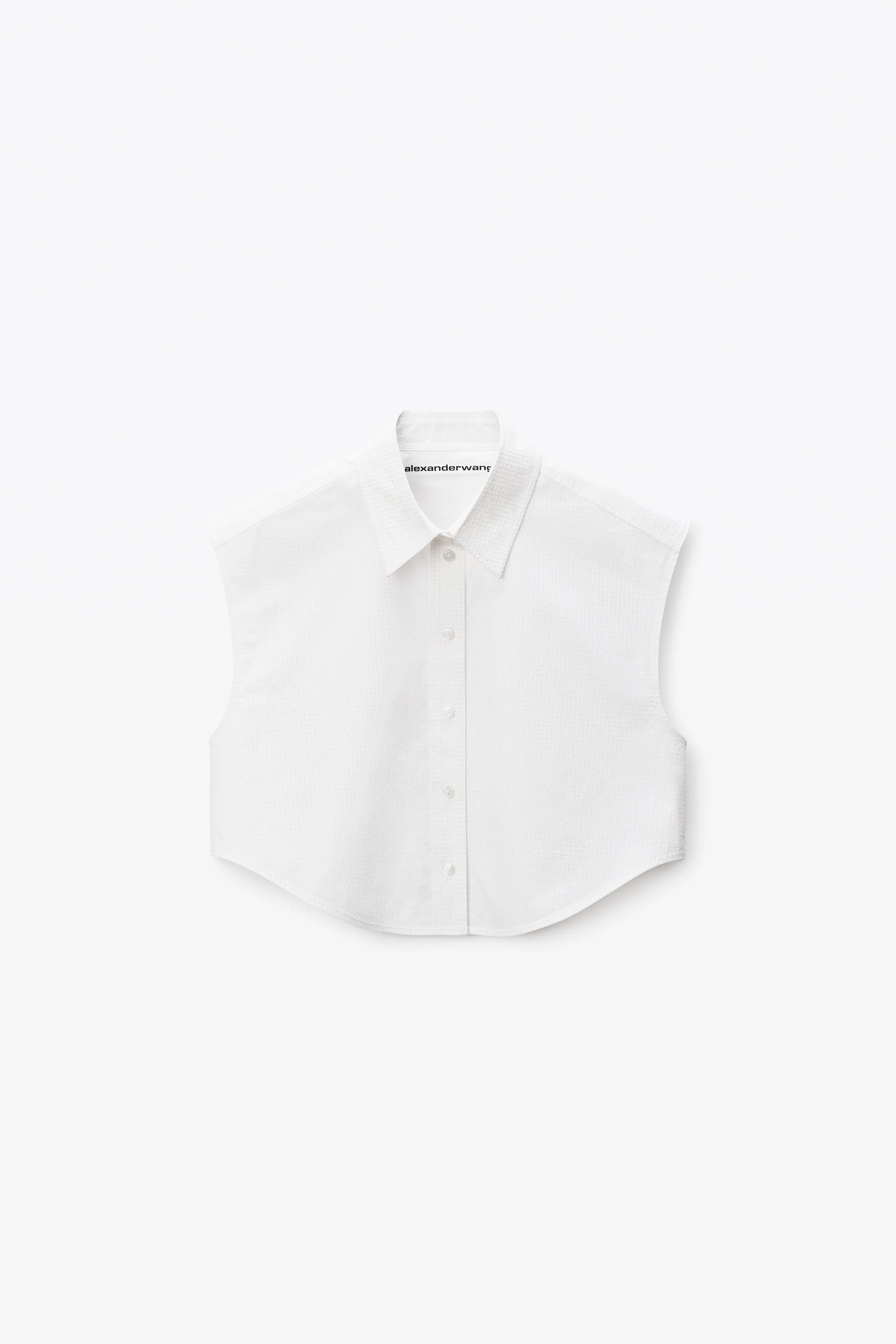 clear bead hotfix creates a glassy, wet look on this sleeveless button-down shirt, finished with topstitching and a button placket. - point collar - body composition: 100% cotton - made in china - model is 5'11" and wears a size s - 1WC3251148100 composition Body: 100%COTTON