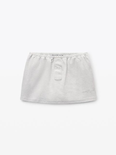 characterized by a deconstructed polo placket at the front, this white miniskirt features side slits, a stepped hem, and logo detailing at the side. It fastens with an interior drawcord and is lined with an interior short. - elastic waistband - body composition: 98% cotton/2% elastane - made in portugal - model is 5'11" and wears a size s - 4CC3255326120 composition Body: 98%COTTON/2%ELASTANE