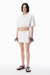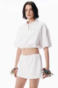 An adjustable drawcord at the hem enhances this heavy cotton pique polo, featuring overdyed white stripes and finished with logo embroidery at the chest. - oversized sleeves - button placket - body composition: 98% cotton/2% elastane - made in portugal - model is 5'11" and wears a size s - 4CC3251030120 composition Body: 98%COTTON/2%ELASTANE