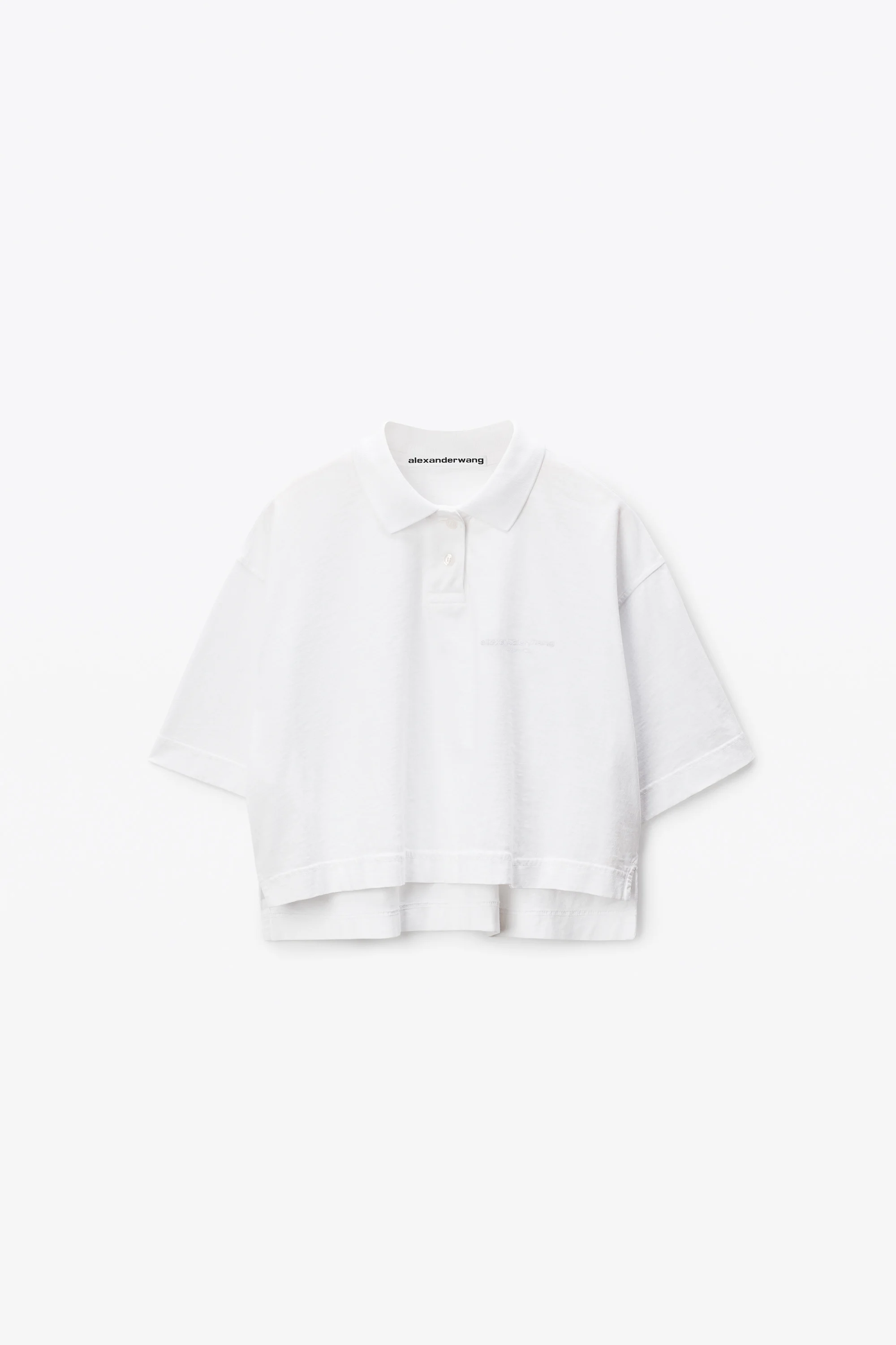 Accented by a side slit, this black cotton polo tee is finished with logo embroidery at the left chest. - polo collar - button placket - short sleeves - hits at waist - body composition: 100% cotton - made in Portugal - model is 5'11" and wears a size s - 1CC3251056120 composition Body: 100%COTTON