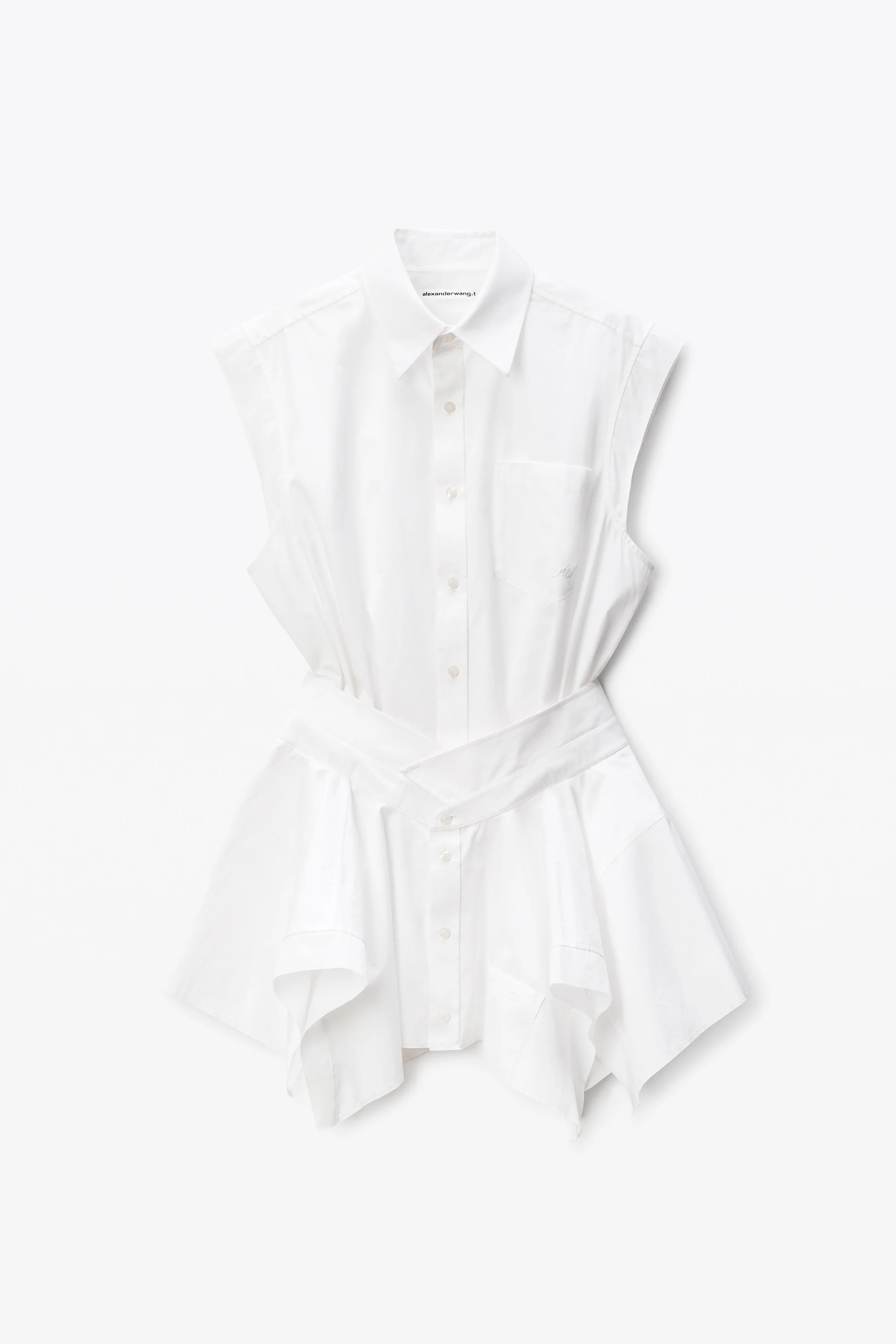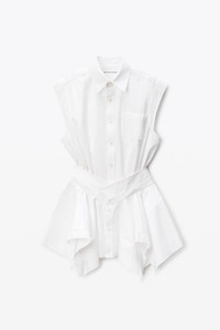 Crafted from two shirts refashioned together, this white pre-styled shirtdress features a 'V' shaped waistband made from turned-up collars, cut-off shirt pockets with logo embroidery, and a raw-edged hem. It sits at the upper thigh and is made of cotton. - pull-on style - body composition: 100% cotton - made in china - model is 5’11" and wears a size 4 - 4WC3256786100 composition Body: 100%COTTON