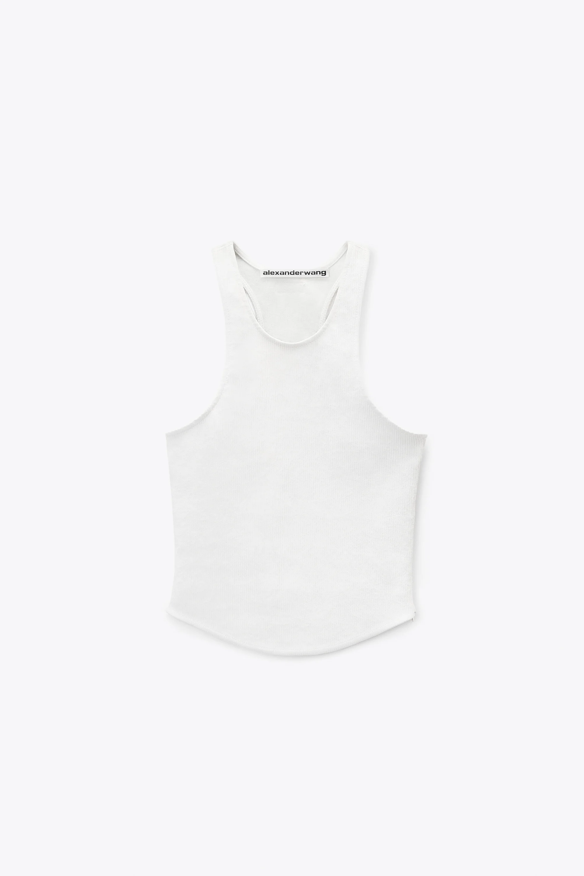 Form-fitting tank top made from white ribbed stretch leather, designed for a contoured fit. Features a racerback neckline, curved hem, and invisible side zipper for easy wear. Finished with a tonal alexanderwang logo patch at the back neck. - racerback neckline - invisible side zip closure - body composition: 100% lambskin - body 2: 96% cotton / 4% elastane - model is 5'11" and wears a size 4 - made in India - 1WC4251132100 composition Body Face: 100%LAMBSKIN (OVIS ARIES ARIES) Body Back: 96%COTTON/4%ELASTANE