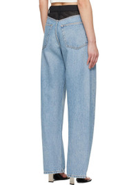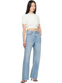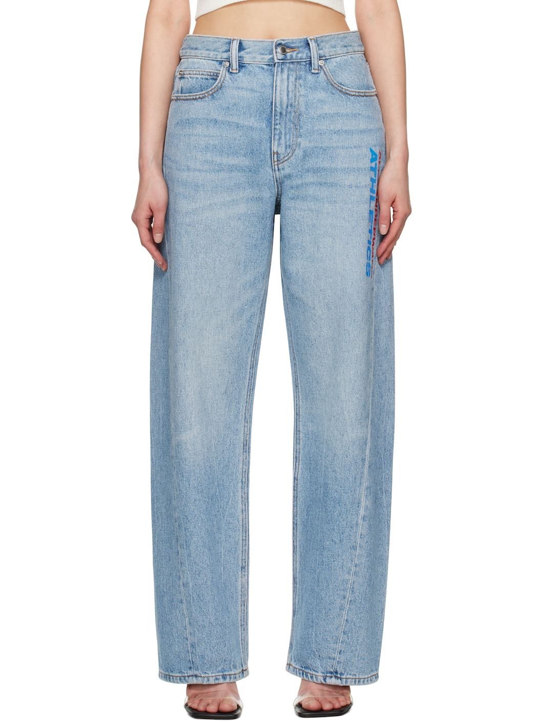 Non-stretch denim jeans. Fading and whiskering throughout. · Belt loops · Five-pocket styling · Zip-fly · Logo printed at leg · Twisted outseams · Mesh panel at back waistband · Logo-engraved silver-tone hardware · Contrast stitching in tan Supplier color: Classic light indigo Body: 100% cotton. Trim: 100% polyester. Made in China 251187F069015