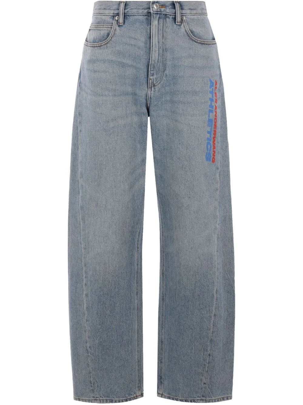 wide-leg jeans Highlights - Light blue - Concealed fly and button fastening - Classic five pockets - Belt loops - Logo print to the front Imported Composition Cotton 100%, Polyester 100%