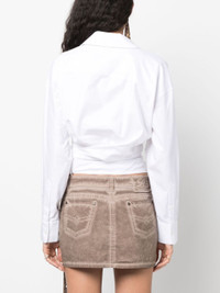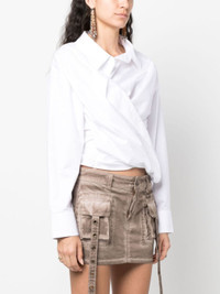 wrap cotton shirt from ALEXANDER WANG featuring optical white, cotton, wrap design, spread collar, V-neck and long sleeves. Size & Fit Model Measurements: Height: 1.75 m Bust/Chest: 84.0 cm Hips: 89.0 cm Waist: 61.0 cm Model wears size 2 Fabric and Care Designer Style ID: 1WC3231833 Designer Colour: 100 WHITE Composition: Outer: Cotton 100%; Lining: Polyamide 94%, Elastane 6% Washing instructions: Dry Clean Only