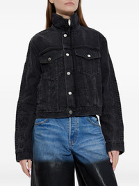 zip-up denim jacket Highlights - Black - High neck - Zip fastening - Chest pockets - Long sleeves - Silver-tone hardware - Drawcord hem Imported Composition Cotton 100% Washing instructions Read Manufacturer Guidelines