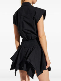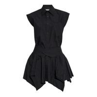 600071204BLK200 / 4WC3256786/TWG/001 - Classic point collar with button-front closure - Sleeveless cut-off design - Asymmetrical handkerchief hemline - Double-shirt layered construction - Premium cotton poplin fabric - Fitted bodice with flared skirt - Deconstructed tailoring details Alexander Wang Cut Off Double Shirt Dress delivers avant-garde sophistication with deconstructed tailoring and architectural silhouette. Crafted from premium cotton poplin in classic black, featuring sleeveless cut-off design with dramatic asymmetrical hemline and button-front closure. The innovative double-shirt construction creates dimensional volume while maintaining the brand's signature edgy minimalism.