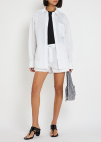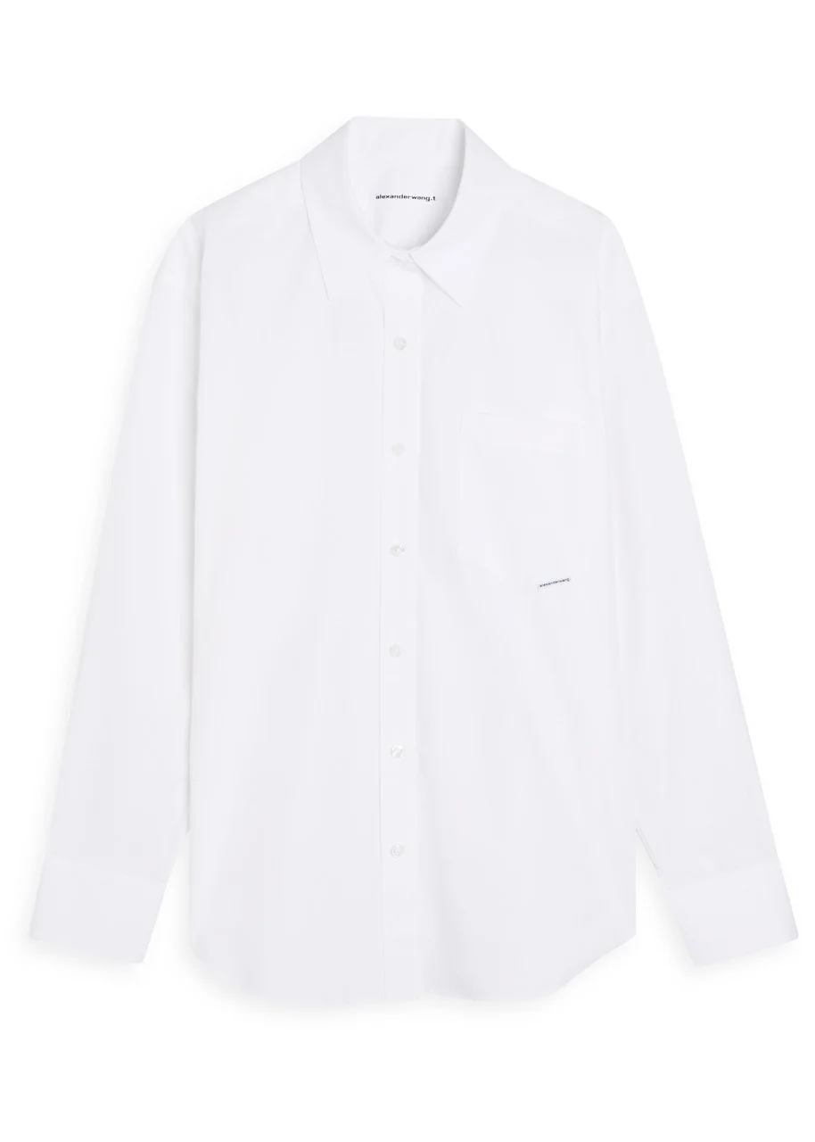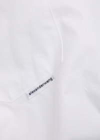 Info & Care alexanderwang.t cotton shirt Button-fastening cuffs with pleat, chest patch pocket, designer tab, box peat at back, curved hem Button fastenings through front 100% cotton Dry clean Size & Fit Length shoulder to hem: 29 inches/ 73.5cm Midweight Slightly loose fit; Model is 5'9"/ 175cm and wears a size small;